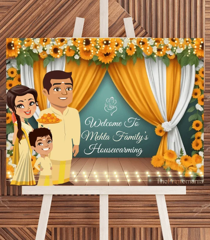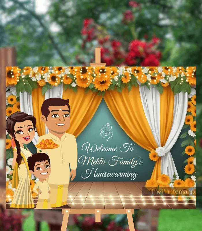 Celebrate your new beginning with this elegant Indian Housewarming Welcome Sign, inspired by traditional Pichwai art and perfect for Graha Pravesh décor. This digital download features intricate motifs, divine symbolism, and warm colors that beautifully enhance your home’s entrance during your housewarming ceremony. Fully editable, you can customize names, dates, and details to create a personalized touch for your special day. Ideal for doorways, photo backdrops, and décor displays, this printable sign blends cultural authenticity with modern design. Instantly download, personalize, and print to create a meaningful and visually stunning welcome for your guests.