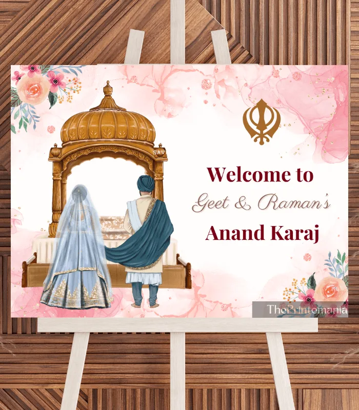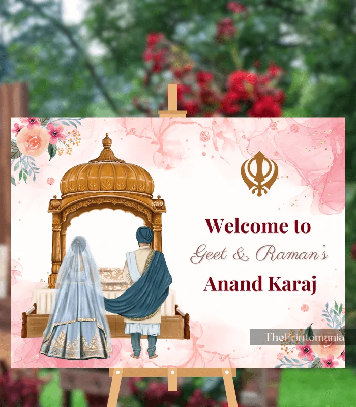 Premium Anand Karaj Welcome Sign Customizable for Reception, Roka, Engagement